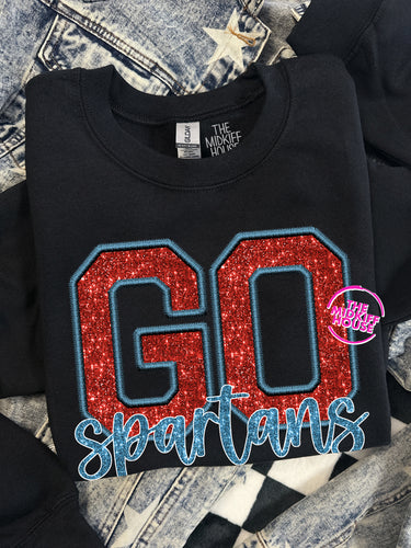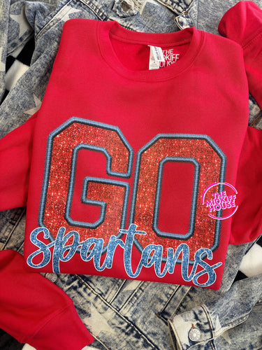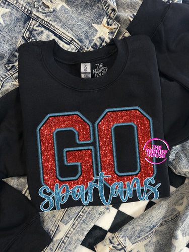 GO SPARTANS FAUX SPARKLE CREWNECK