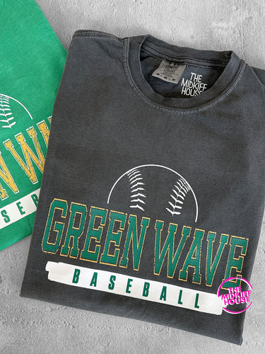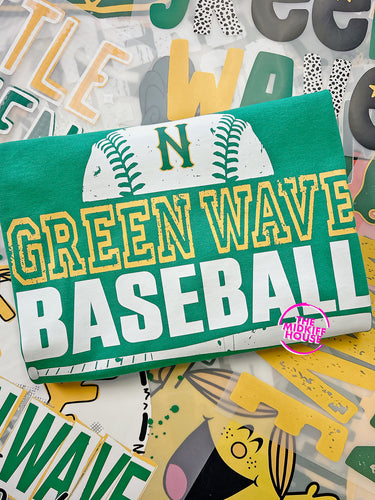 GREEN WAVE BASEBALL DISTRESSED TITLE TEE