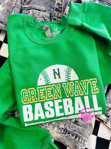 GREEN WAVE BASEBALL GRUNGE CREWNECK