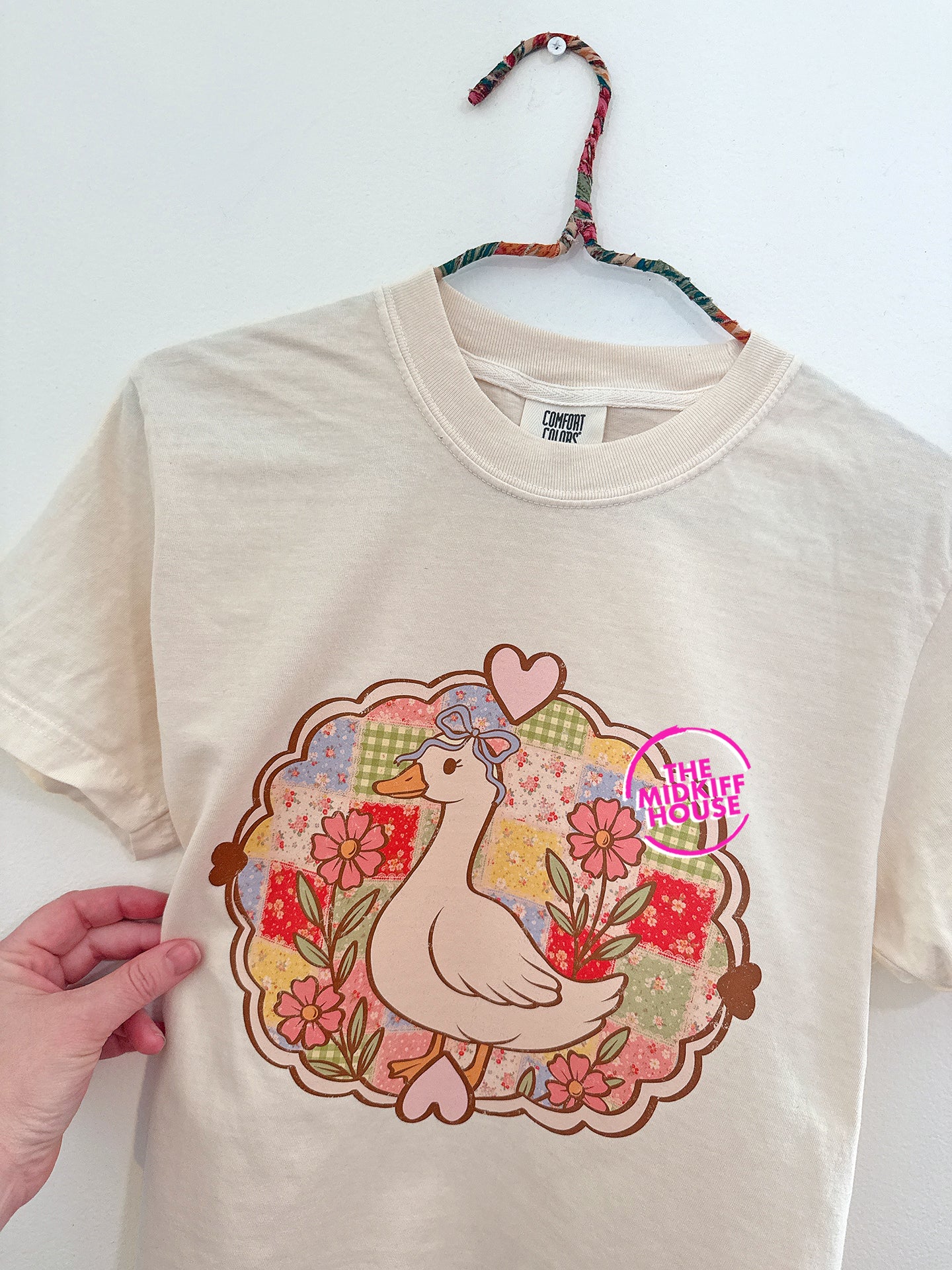 CARE INSTRUCTIONS: GENTLE-CYCLE WASH IN COLD WATER. NO BLEACH, NO FABRIC SOFTENER, NO LAUNDRY PODS. AIR DRY WHEN POSSIBLE. DO NOT IRON OVER DESIGN.