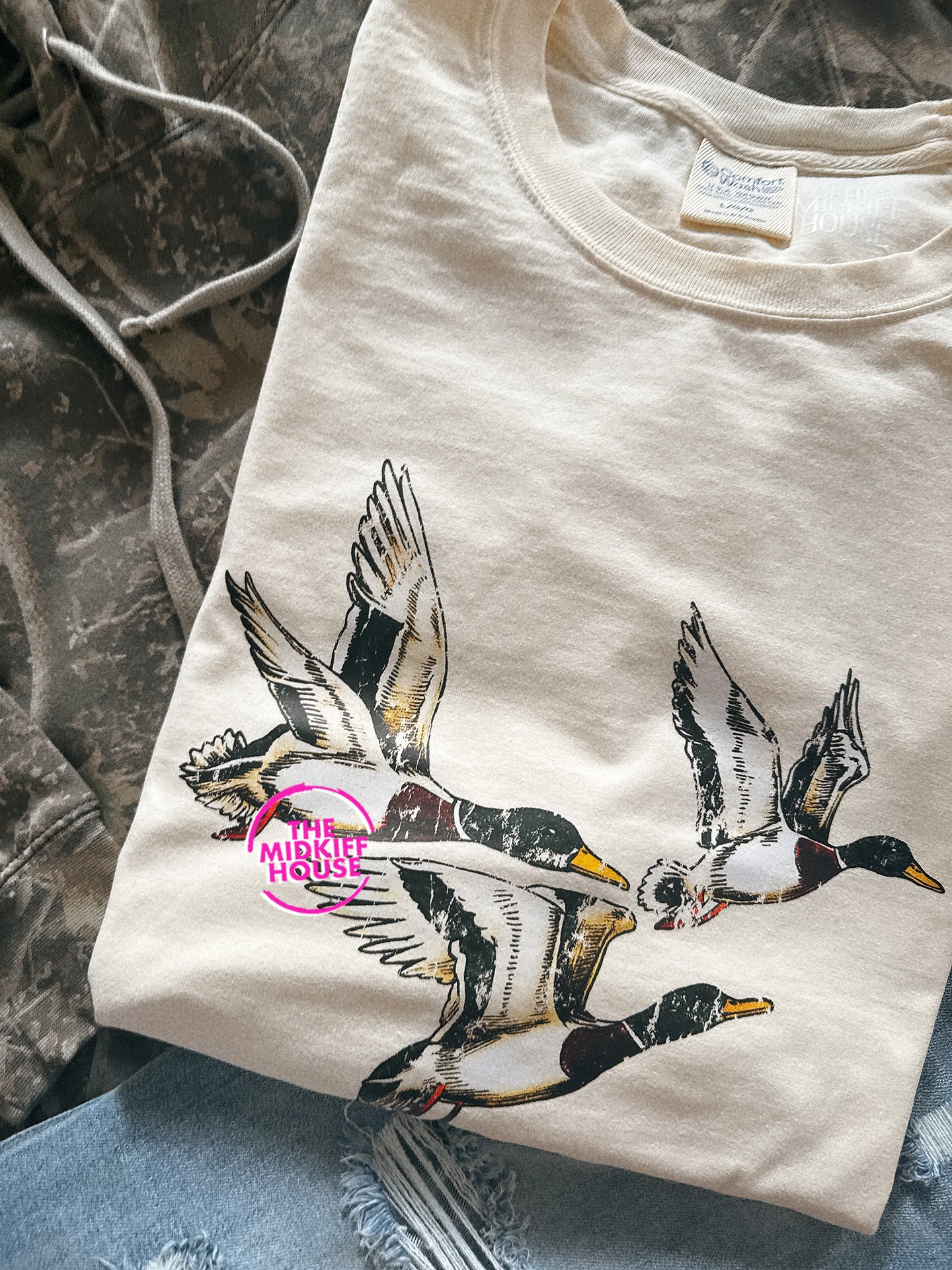 CARE INSTRUCTIONS: GENTLE-CYCLE WASH IN COLD WATER. NO BLEACH, NO FABRIC SOFTENER, NO LAUNDRY PODS. AIR DRY WHEN POSSIBLE. DO NOT IRON OVER DESIGN.